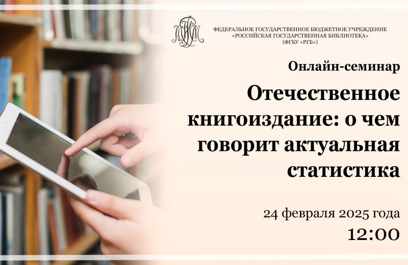 Научно-образовательный отдел Российской государственной библиотеки приглашает специалистов книжной отрасли на онлайн‑семинар, посвящённый итогам статистики печати за 2024 год.