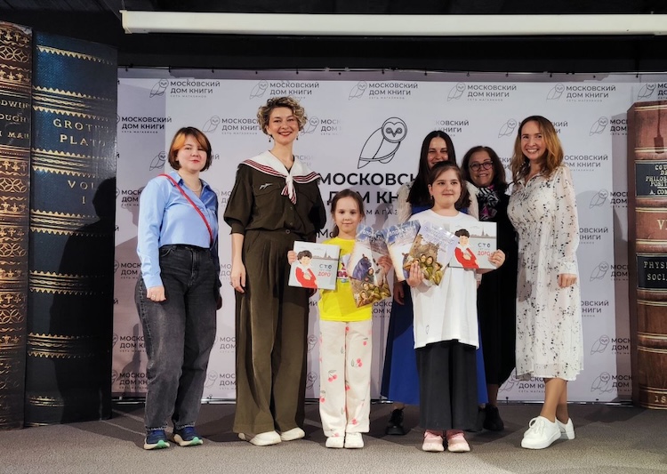 Издательство «Бумба» приготовило еще один сюрприз — книгу «Сто лет для Доро» о дружбе мальчика и чайки в блокадном Ленинграде. Художница Анастасия Нагирная рассказала обо всех этапах работы над иллюстрациями к книге. Оказалось, она еще в детстве мечтала иллюстрировать издания, но потом забыла об этом. И все же талант художника победил! Анастасия посоветовала ребятам не бросать свои увлечения, потому что именно в детстве люди ярко чувствуют, чем хотели бы заниматься в жизни. Ее рассказ завершился веселой викториной, а издательство «Бумба» подарило участникам книги.