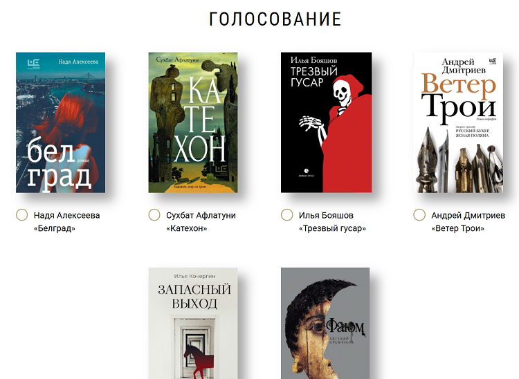 Победитель голосования будет объявлен в октябре на ежегодной церемонии награждения лауреатов премии «Ясная Поляна» в Москве.