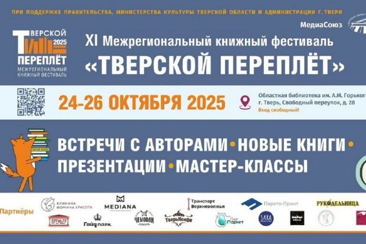 24-26 октября в столице Верхневолжья состоится XI Межрегиональный книжный фестиваль «Тверской переплёт». Самый масштабный в регионе книжный праздник по традиции соберёт в Тверской областной библиотеке имени А.М. Горького писателей, поэтов, краеведов, издателей, любителей литературы из Москвы, Санкт-Петербурга, Твери.