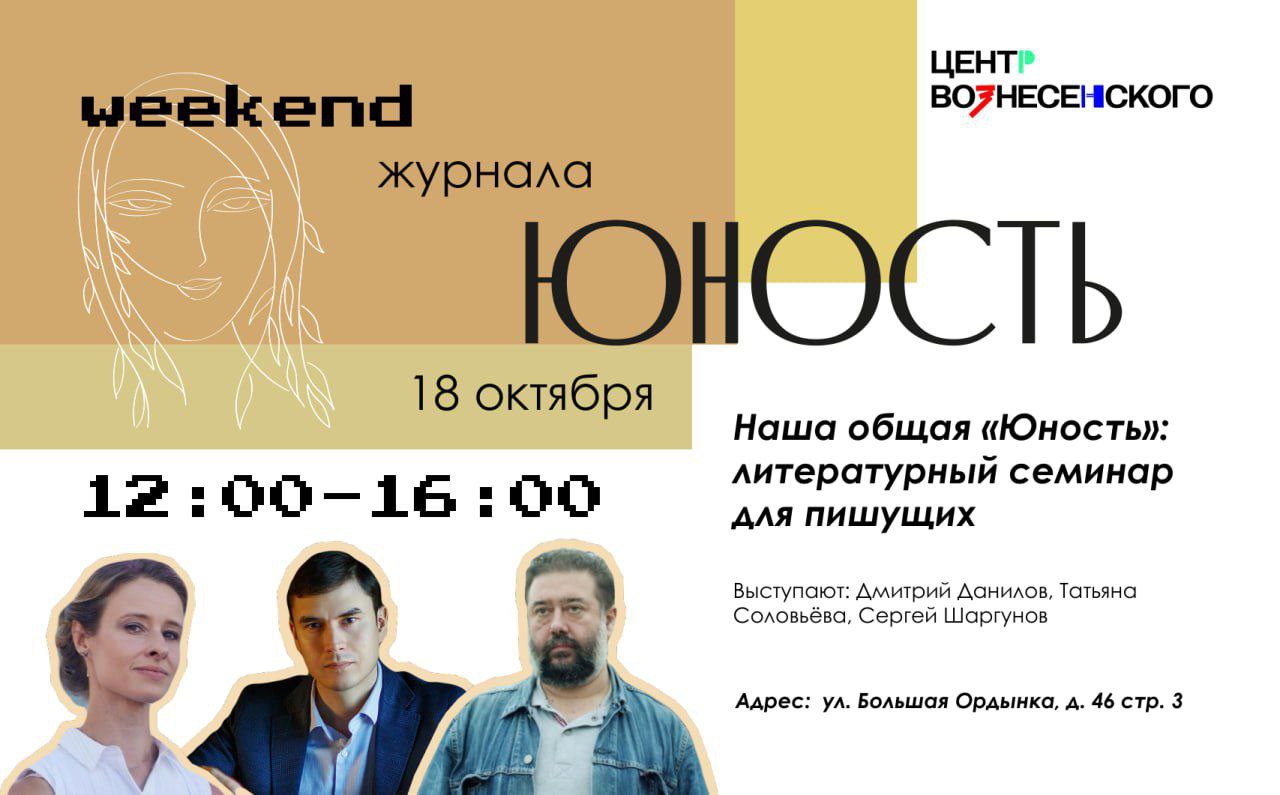 18 октября в Центре «Вознесенского» пройдет семинар журнала «Юность» — из цикла мероприятий, посвященных 70-летию журнала.