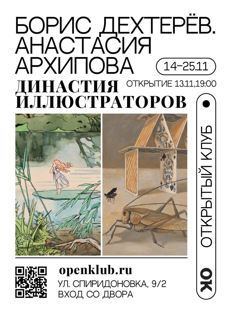 С 14 по 25 ноября в галерее «Открытый клуб» будет проходить выставка «Борис Дехтерёв. Анастасия Архипова. Династия иллюстраторов», посвящённая творчеству художников-графиков, чьи иллюстрации украшают книги, выходившие миллионными тиражами и издававшиеся за рубежом.