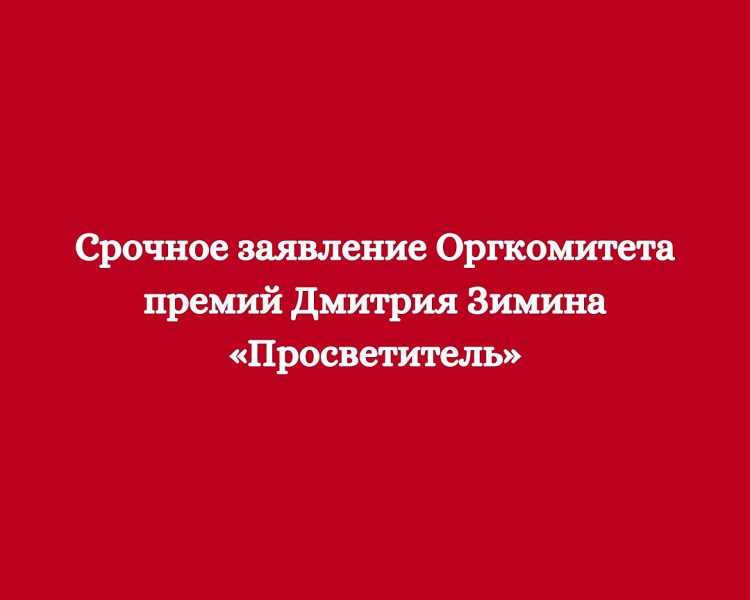 "Организационный комитет Премии Дмитрия Зимина "Просветитель" благодарит Zimin Foundation за долгие годы поддержки премии. К сожалению, сегодня это сотрудничество заканчивается", - говорится в сообщении.