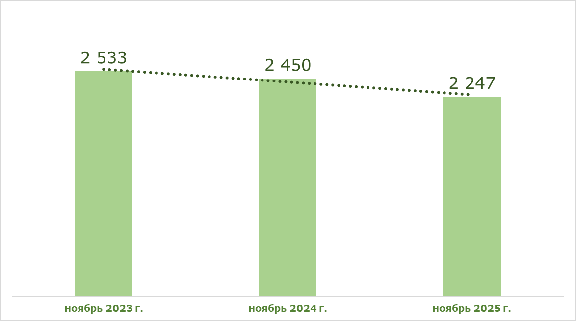 Результаты мониторинга фиксируют тревожную тенденция ежегодного сокращения книжных магазинов в РФ. В ноябре 2023 года общее количество объектов книжной торговли в стране составляло 2 533, в ноябре 2024 года данное количество сократилось до 2 450. По состоянию на ноябрь 2025 года количество книжных магазинов составляет 2 247. Таким образом, за два года книжных магазинов в России стало меньше на 11,3% или на 286 объектов (с учетом открытий новых книготорговых точек).