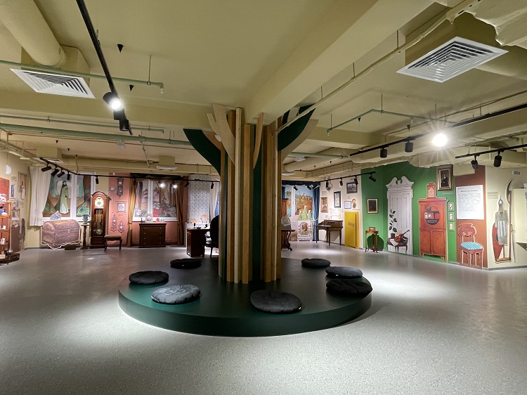 Посетителей зала «Сказка» встречает портретная галерея великих сказочников и героев их произведений, волшебное дерево, избушка Бабы-яги, ярмарочный театр, волшебное зеркало.
