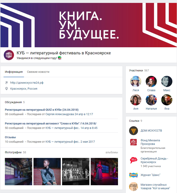 В ноябре 2017 года в Красноярске в одиннадцатый раз прошла Красноярская ярмарка книжной культуры (XI КРЯКК). Инициатором и организатором этого культурного фестиваля традиционно выступает Фонд Михаила Прохорова. Главная тема ярмарки этого года – «Наука и культура».