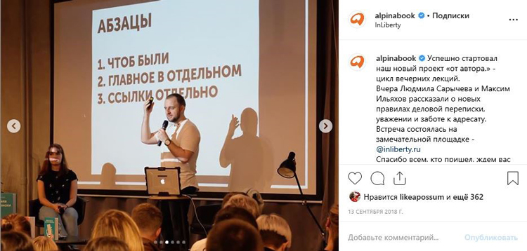 Серия вечерних лекций «От автора» от издательства «Альпина Паблишер» проходят при поддержке площадки Inliberty.
