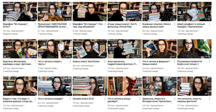 Особенность контента блога заключается в охвате практически всех жанров, от художественной литературы до нон-фикшн. Так как в чтении я практически «всеядна», в блоге можно найти видео о самых разных книгах, что способствует максимальному вовлечению аудитории с разными литературными предпочтениями.