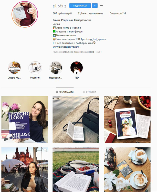Контент состоит либо из оригинальных постов Ирины, либо является перепостом издательских групп, известных рецензентов, ссылок на тематические публикации на разных ресурсах – от сайтов книжных издательств до семейных ресурсов.
